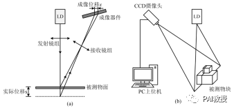 (a)一维点激光三角测量法 (b)二维线激光三角测量法